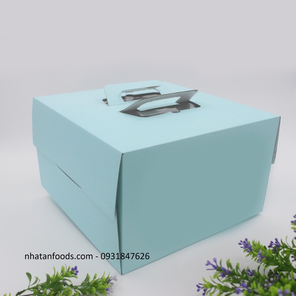 Chất liệu: Giấy carton cứng giữ form hộp bánh kém tốt, có quai xách