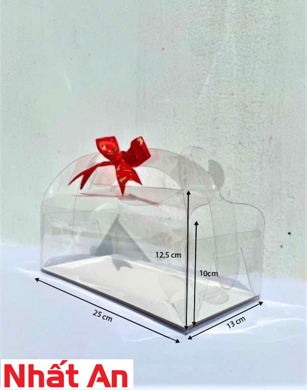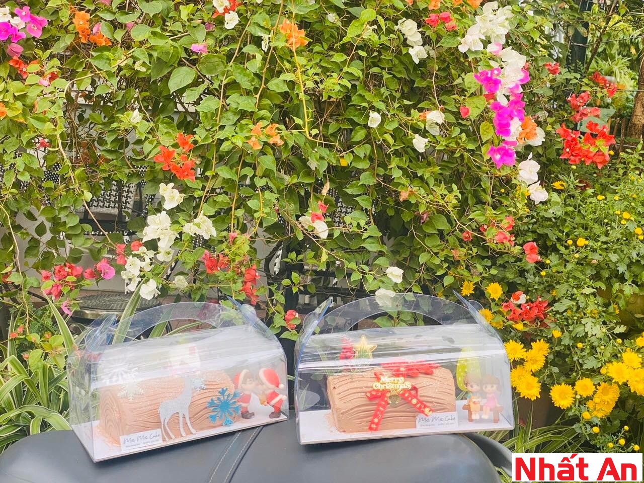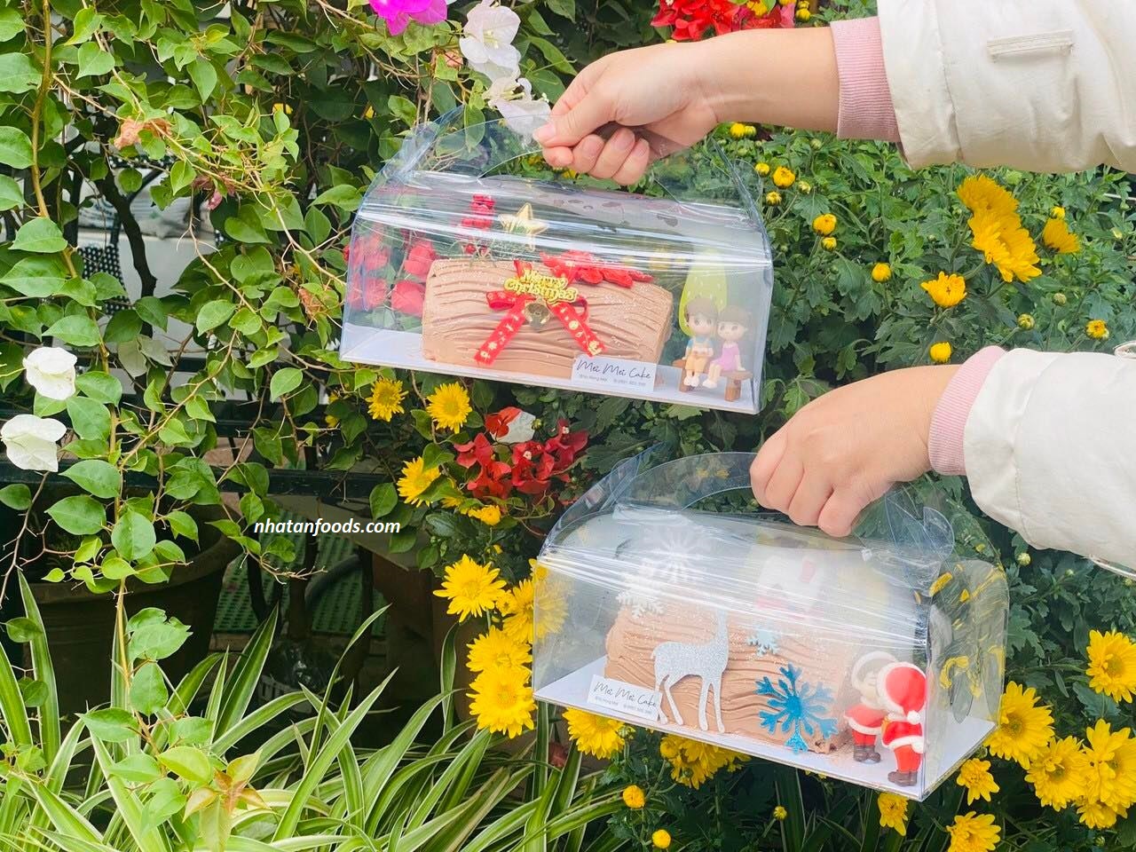 Hộp mica xinh dùng để đựng những chiếc bánh gốc cây trong mùa Giáng sinh, giúp những chiếc bánh được trang trí tỉ mỉ xinh đẹp.