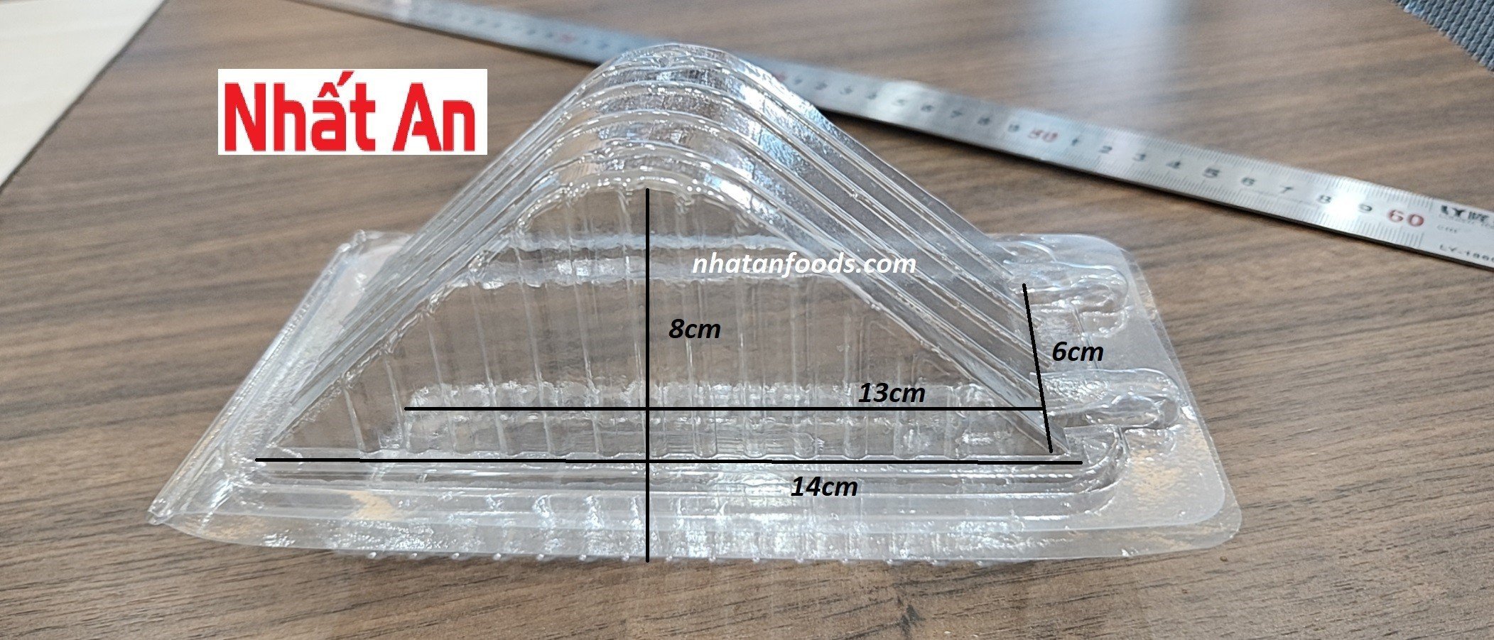 Kích thước chiều cao 8cm, ngang 6cm, dài miệng 14cm, dài đáy 13cm