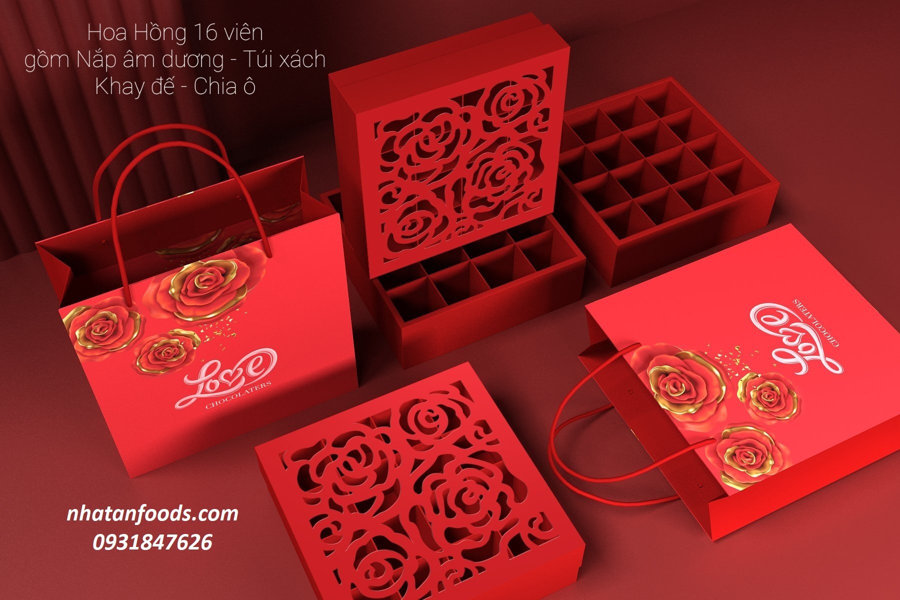 Hộp socola valentine 16 viên Hoa Hồng, bao gồm túi.