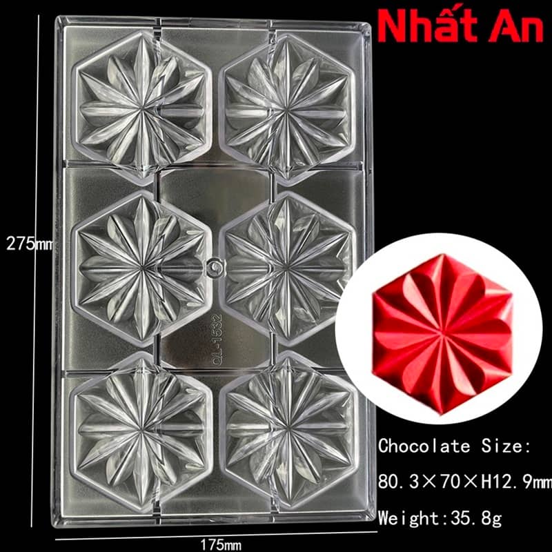 Khuôn socola bonbon hình lục giác, do độ sâu có giới hạn nên quý khách xem xét kĩ.