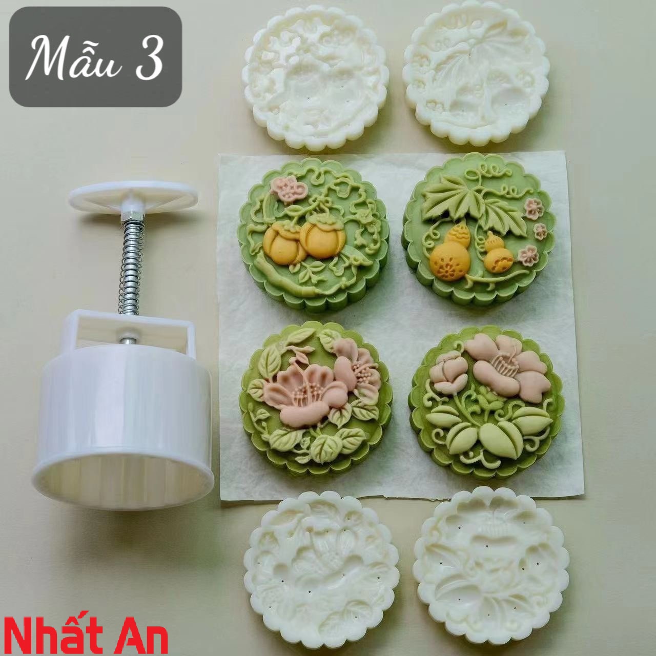 Khuôn Trung Thu lò xo 4 mặt Hồ Lô Hoa có 2 size
