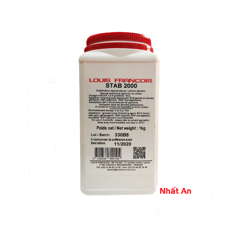 Louis Francois Stab 2000 là chất ổn định bánh kem được thiết kế để làm giảm kích thước tinh thể băng và bong bóng khí trong kem từ đó giúp kem mịn hơn. Khi cho kem vào miệng, sẽ có cảm giác kem tan chầm chậm mượt mà trong thớ lưỡi. Đồng thời còn giúp sản phầm tăng thể tích và lâu chạy.